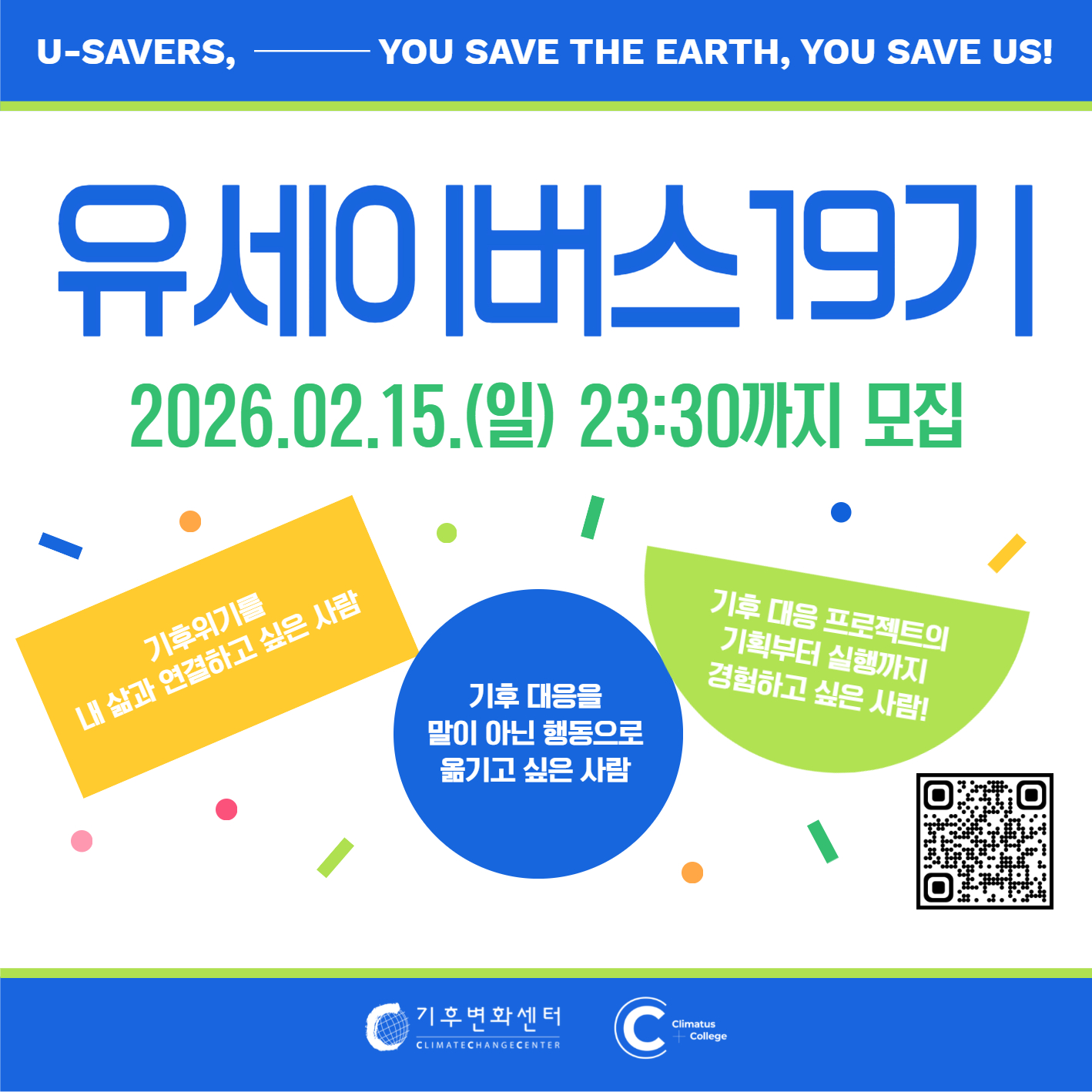 [모집] 대학생 기후활동가 「U-SAVERS(유세이버스) 19기」 (~02/15)
