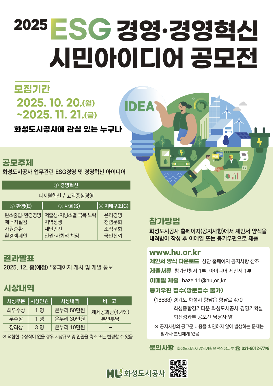 #화성도시공사 #ESG경영혁신 #환경경영 #ESG공모전 #아이디어공모전 #환경공모전