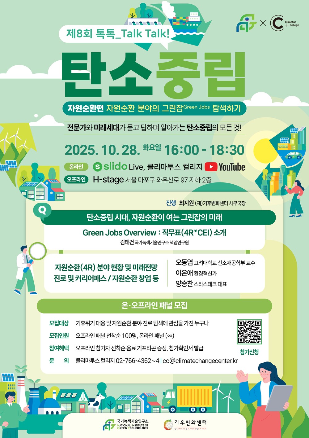 [선착순 모집] 「제8회 톡톡_TALK, TALK! 탄소중립 : 자원순환&그린잡」 온·오프라인 패널 모집
