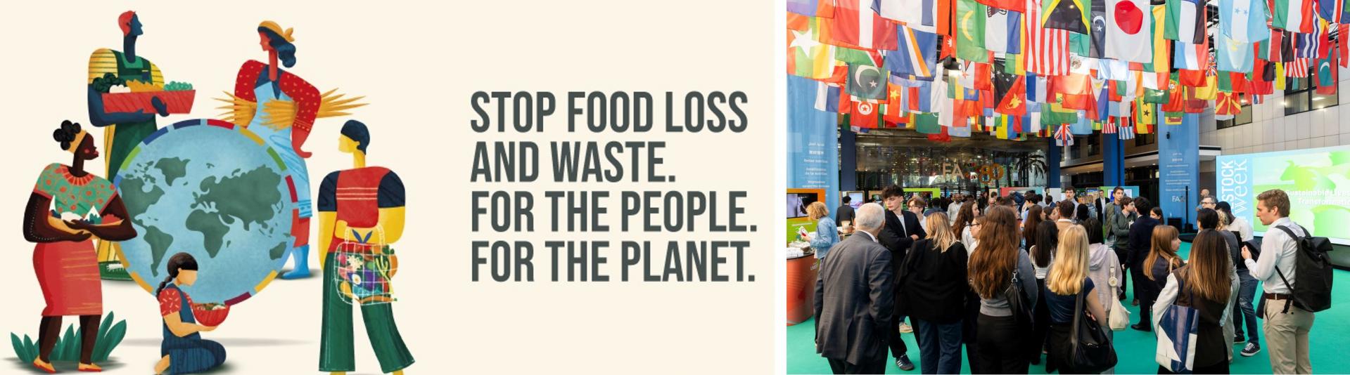 ▲ 그림1. 식량 손실 및 낭비 인식의 날(International Day of Awareness of Food Loss and Waste, IDAFLW) 홍보 포스터와 FAO 본부에서 열린 기념 행사 현장
