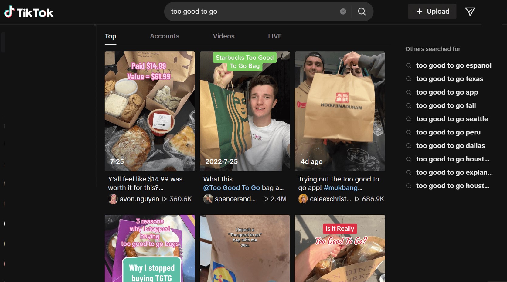 ▲ 그림5. 투 굿 투 고(Too Good To Go)’의 틱톡 검색 결과